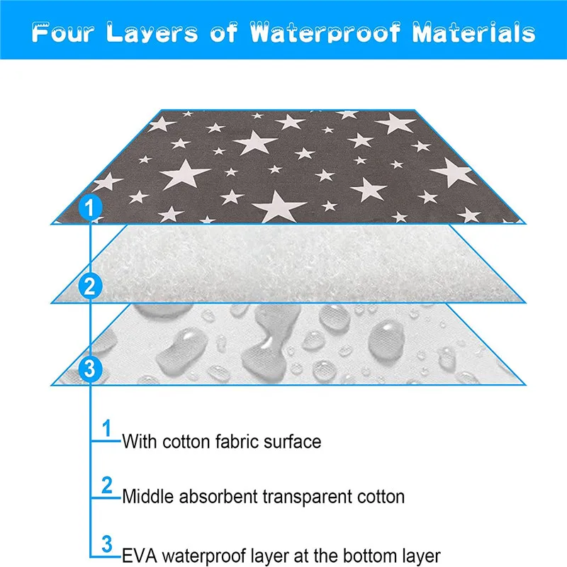 The Washable Pet Pee Pad features a high-quality cotton-EVA material that offers excellent water absorption, ensuring that any pet urine is quickly absorbed and contained within the pad.